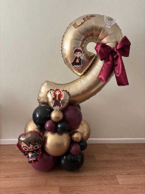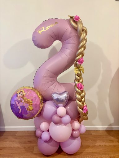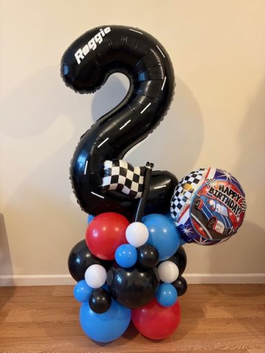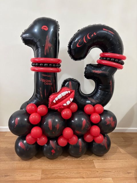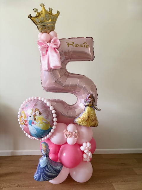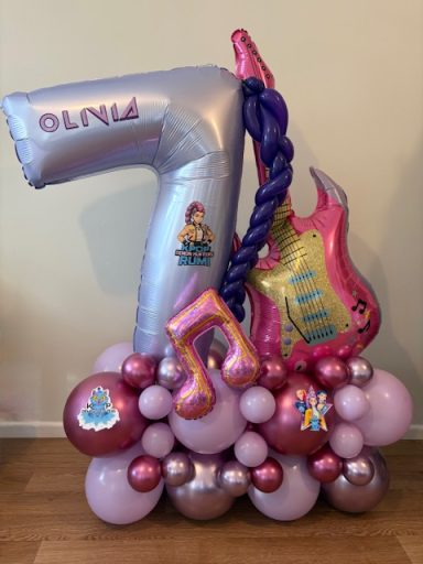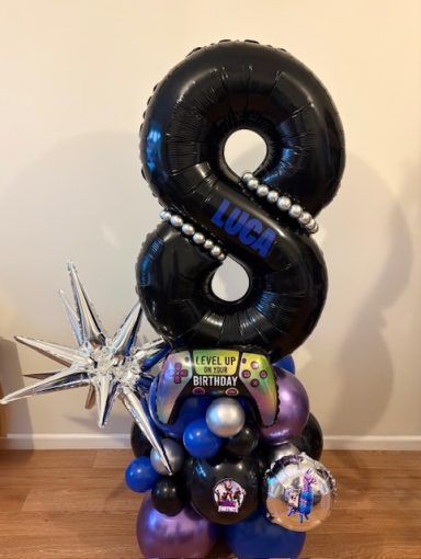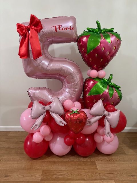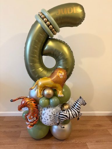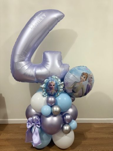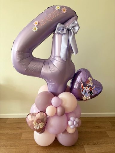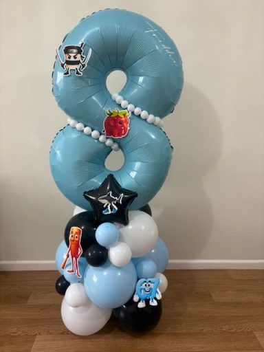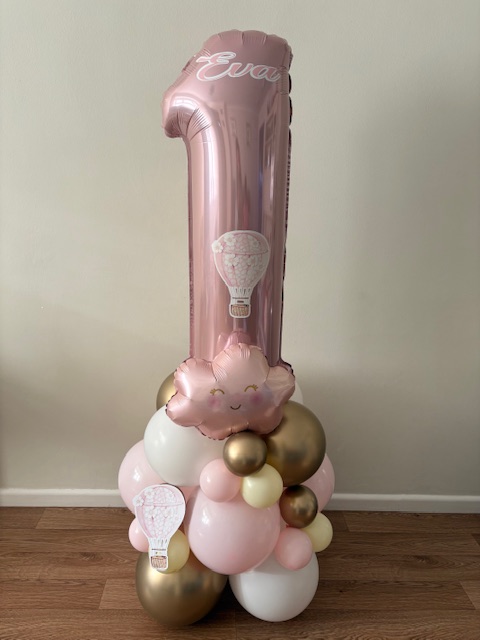 They can be done in two different styles , a number stack or as a bouquet which is the longer base. These stand between 4/5 ft tall, so towering above most children, and really making a statement!
